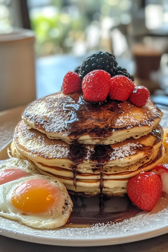 - Zubereitung: Zutaten mischen, braten, mit Beeren garnieren.